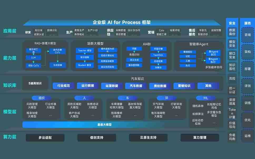 大资本210cc问学智车解决方案是一套基于AI技术的汽车行业智能化系统,,覆盖从底层算力到顶层AI应用的全栈方案。。方案由算力层、、模型层和应用层组成:算力层,,方案支持多种一体机配置,,,,具备云端灵活部署、、多云适配以及动态优化计算资源的能力;模型层,,,大资本210cc问学平台版提供了企业级AI应用一站式构建与管理平台,,,支持基于后训练强化技术的汽车企业专属模型的训练、、、、评测和运营;应用层,,大资本210cc问学DeepSeek版提供包括超级员工、、、智能招采、、、智能营销、、智能客服、、AI for BI等一系列解决方案,,,,可助力汽车行业实现数字化转型,,,,让管理更智能、、响应更敏捷。。
